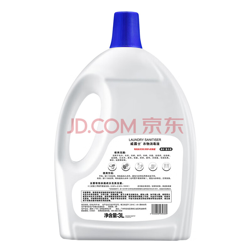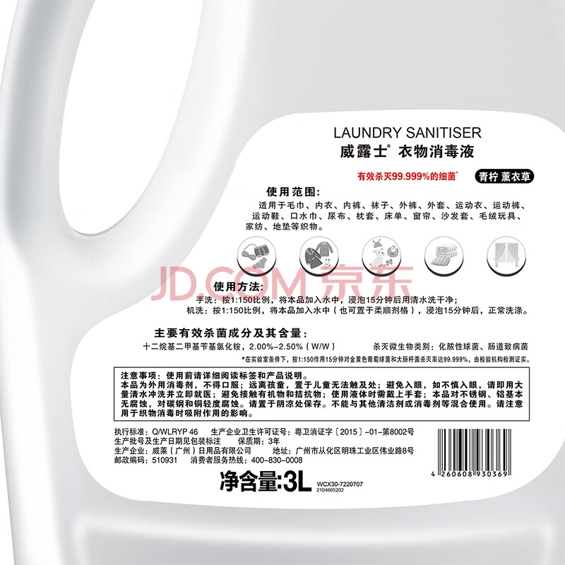 商品相册:威露士衣物消毒液薰衣草3L 杀菌99.9%除螨内衣衣物除菌液 可配洗衣液用第