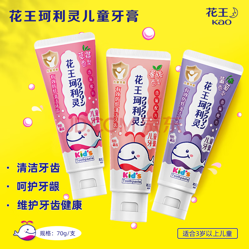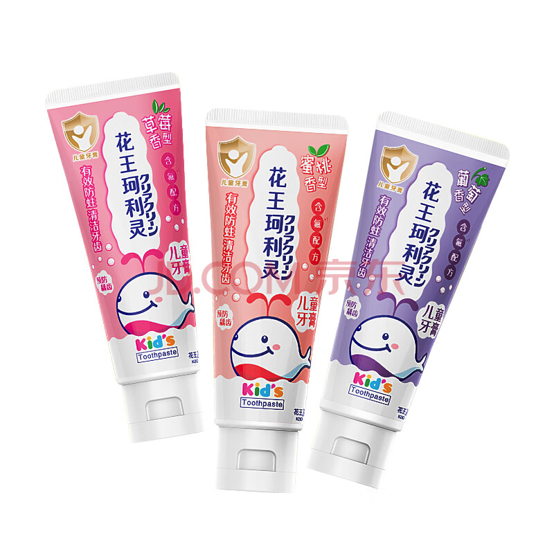 商品相册:花王(KAO)珂利灵儿童牙膏 (草莓味+蜜桃味+葡萄味)70g*3支低氟防蛀适用3岁+第