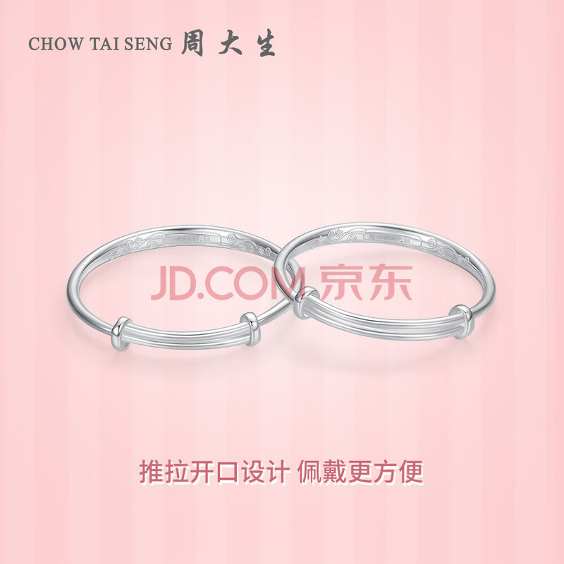 商品相册:周大生【生日礼物】幸福宝贝足银手镯一对镯子送宝宝满月周岁礼物约20g第