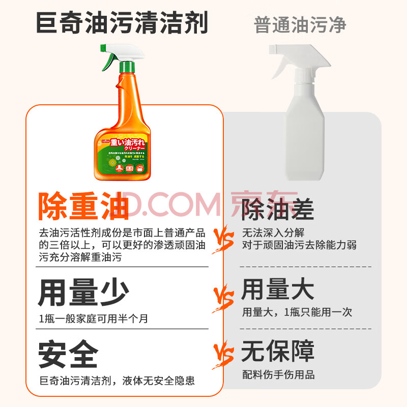 商品相册:巨奇(JUQI)厨房重油污清洁剂500ml*2瓶油污净厨房大扫除油烟机清洗剂油烟净第