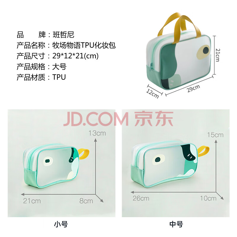 商品相册:班哲尼 TPU半透明旅行洗漱包男女洗漱袋化妆包收纳袋 便携式多功能游泳包温泉包收纳包 牧场物语大号第