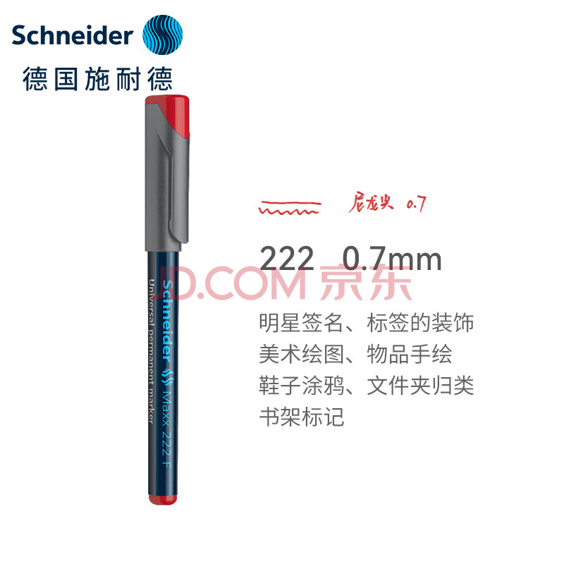 商品相册:施耐德(Schneider)永久性记号笔 环保标记笔 玻璃金属瓷砖墙面胶片笔 光盘笔 MAxx222F-红色第