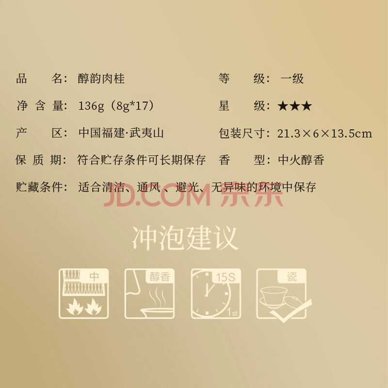 商品相册:武夷星乌龙茶醇韵武夷山岩茶肉桂一级136g中火盒装年货节送礼自饮茶叶第