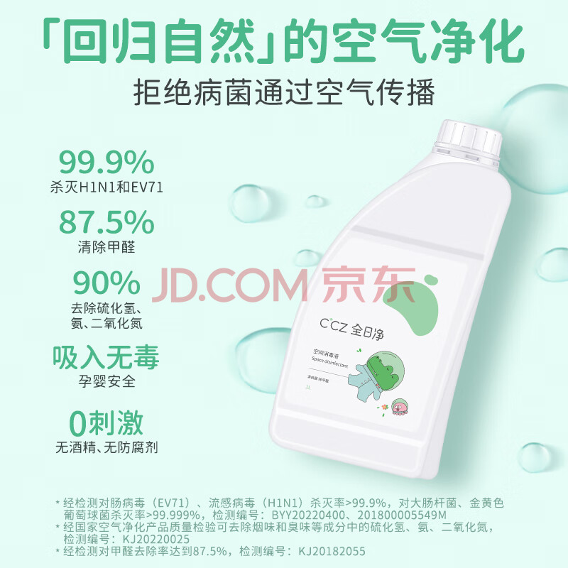商品相册:CCZ全日净空间消毒液1L次氯酸母婴消毒喷雾室内空气环境杀菌补充液第