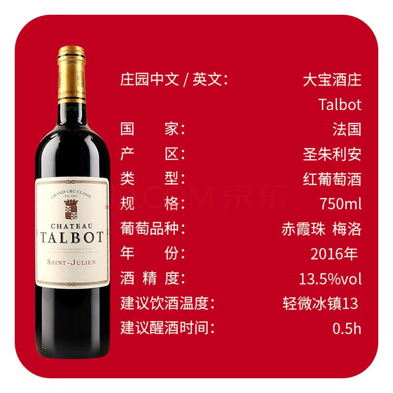 商品相册:大宝庄园(Chateau Talbot)干红葡萄酒2016年750ml 1855四级庄第