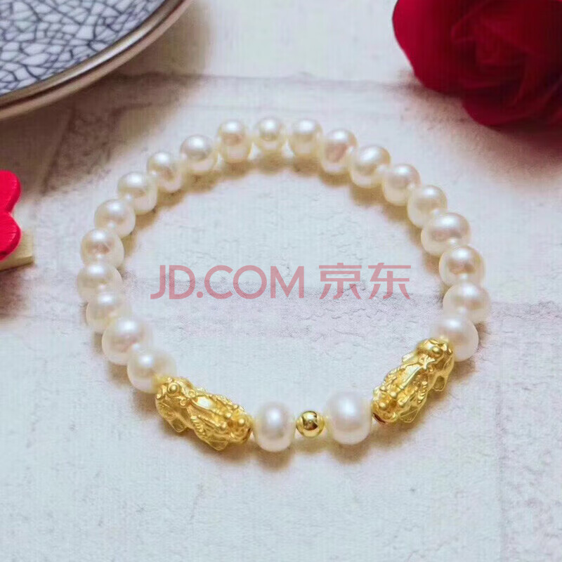 商品相册:蒂蔻(Tico)足金招财貔貅黄金手链女士款3D硬金转运珠珍珠手串女生日礼物第