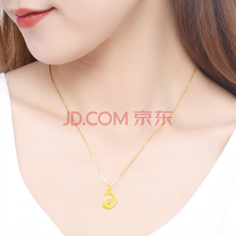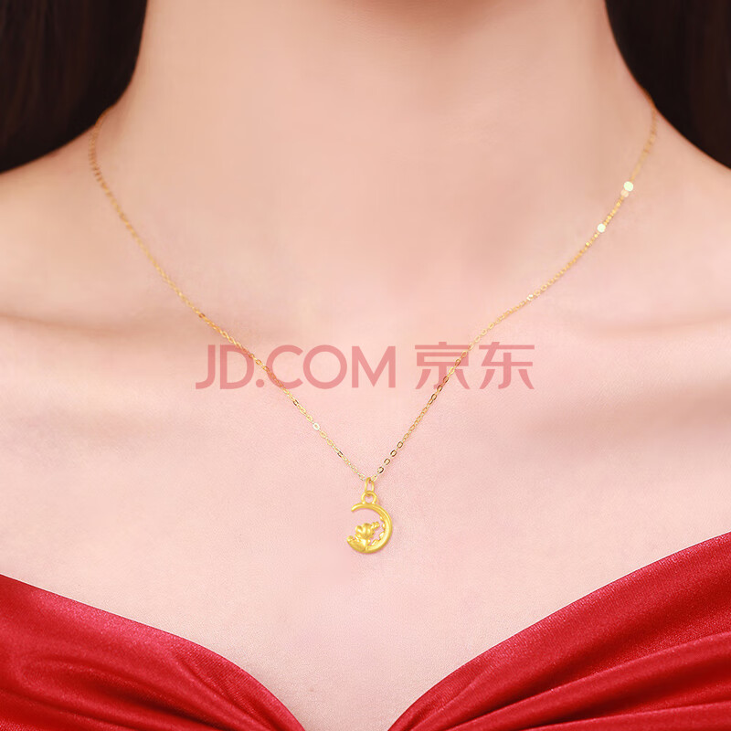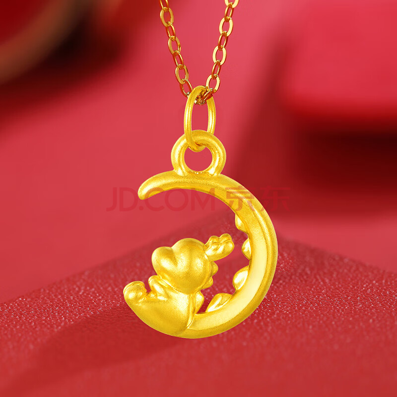 商品相册:Lossot生日礼物女生可爱足金望月龙黄金吊坠女5D硬金龙生肖本命年项链第