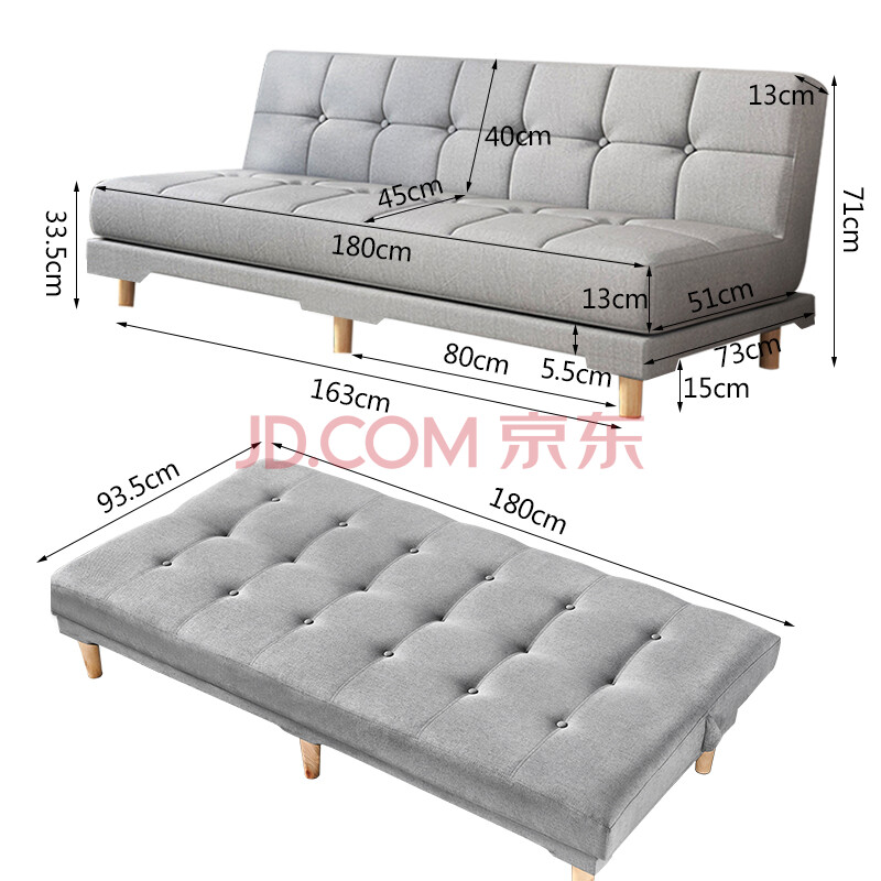 商品相册:华恺之星 沙发床 两用折叠沙发多功能小户型双人位休闲沙发S69浅灰色棉麻第