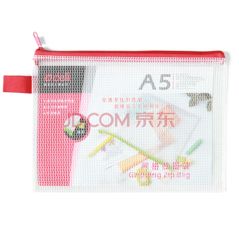 商品相册:得力(deli)5591 A5透明文件袋拉边袋 网格拉链袋防水资料袋档案袋 财务凭证票据收纳袋 颜色随机12只装第