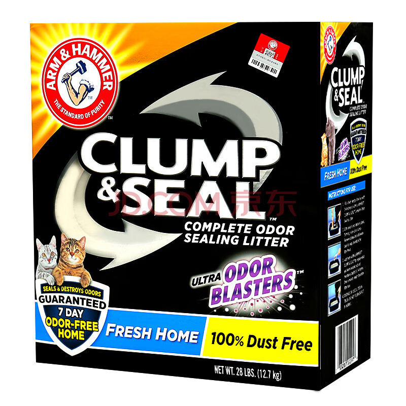 商品相册:艾禾美(ARM&HAMMER)铁锤猫砂黑盒蓝标28磅膨润土钠基矿石矿砂进口猫咪沙用品除臭低尘第