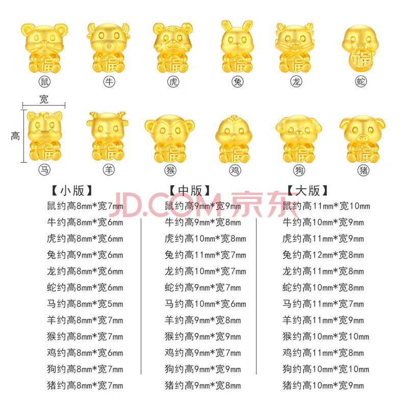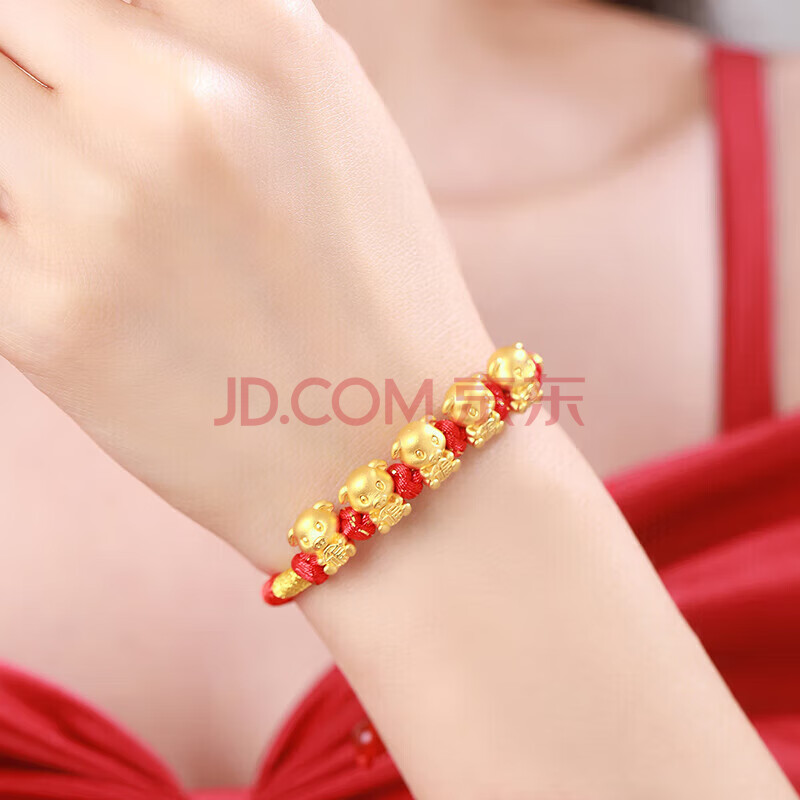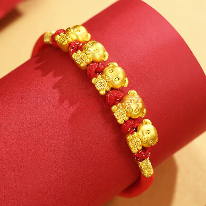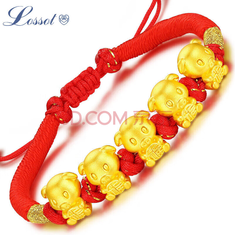 商品相册:Lossot生日礼物本命年十二生肖猪足金五福猪黄金转运珠手链5D硬金猪第