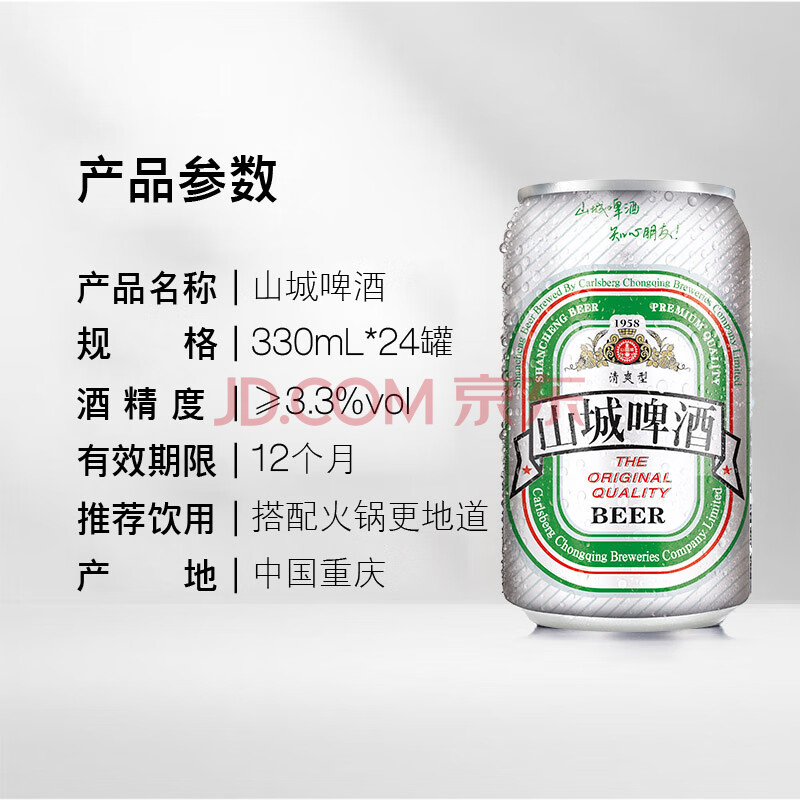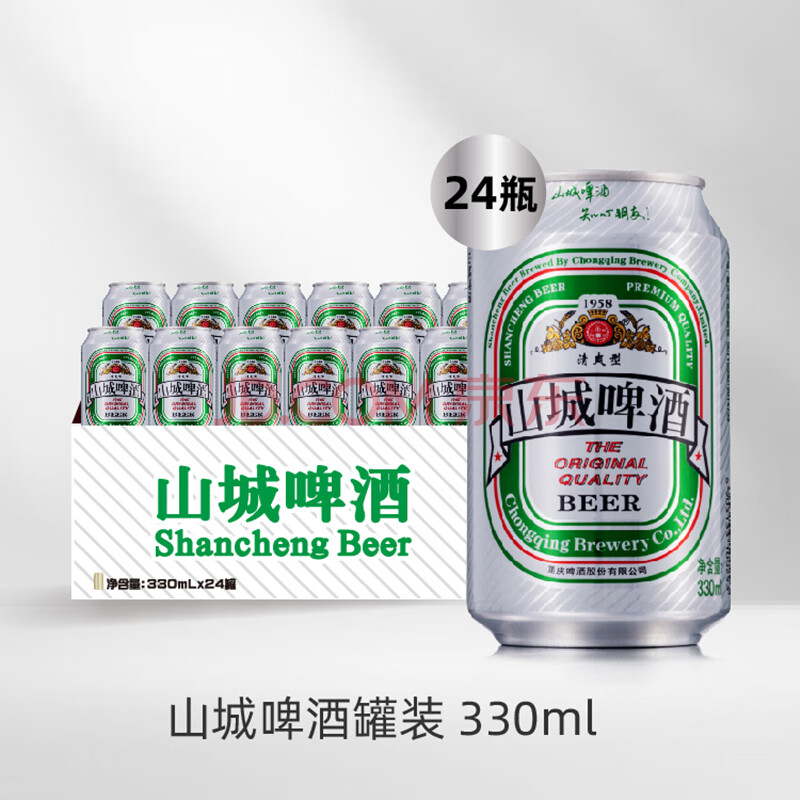 商品相册:重慶啤酒(ChongQing)山城清爽型330ml*24 整箱罐装啤酒 口感清淡顺滑第