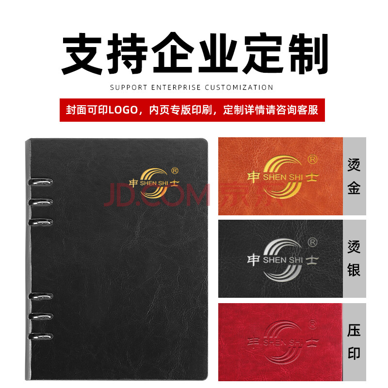 商品相册:申士 SHEN SHI B5商务活页笔记本子 简约可拆卸9孔内芯 学生办公记事本可定制 95张1本 14816黑第