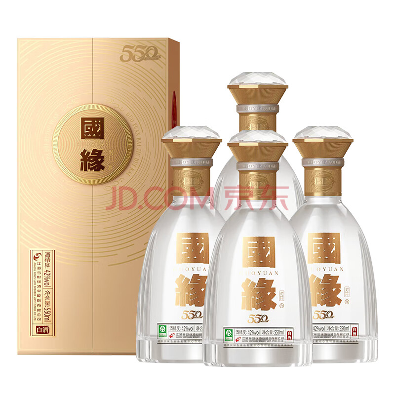 商品相册:今世缘国缘对开 柔雅型白酒 42度 550ml*4瓶 整箱装 常规送礼第