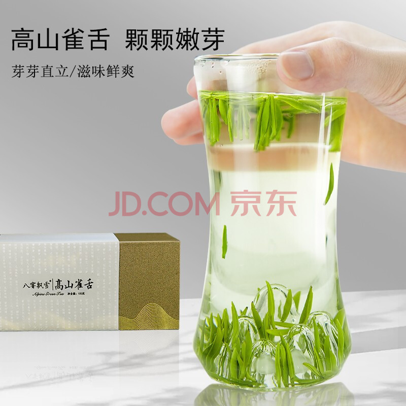 商品相册:八窨飘雪绿茶茶叶礼盒 雀舌新春茶特级明前高档四川毛尖年货送礼品袋300g第