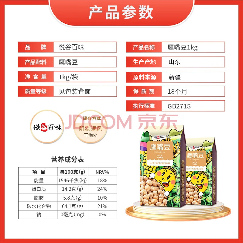 商品相册:悦谷百味 鹰嘴豆2斤(新疆原产 五谷杂粮粗粮 鸡心豆 轻食健身 代餐轻食)第