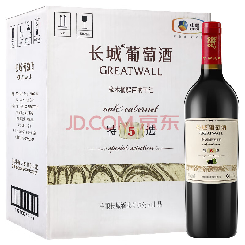 商品相册:长城特选5橡木桶解百纳干红葡萄酒750ml*6瓶整箱装红酒自营送礼第