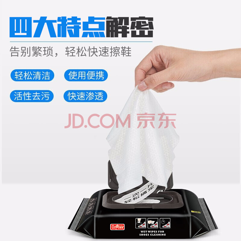 商品相册:巨奇擦鞋湿巾小白鞋清洁剂祛黄去污球鞋运动鞋免水洗清洗神器80片*3包第