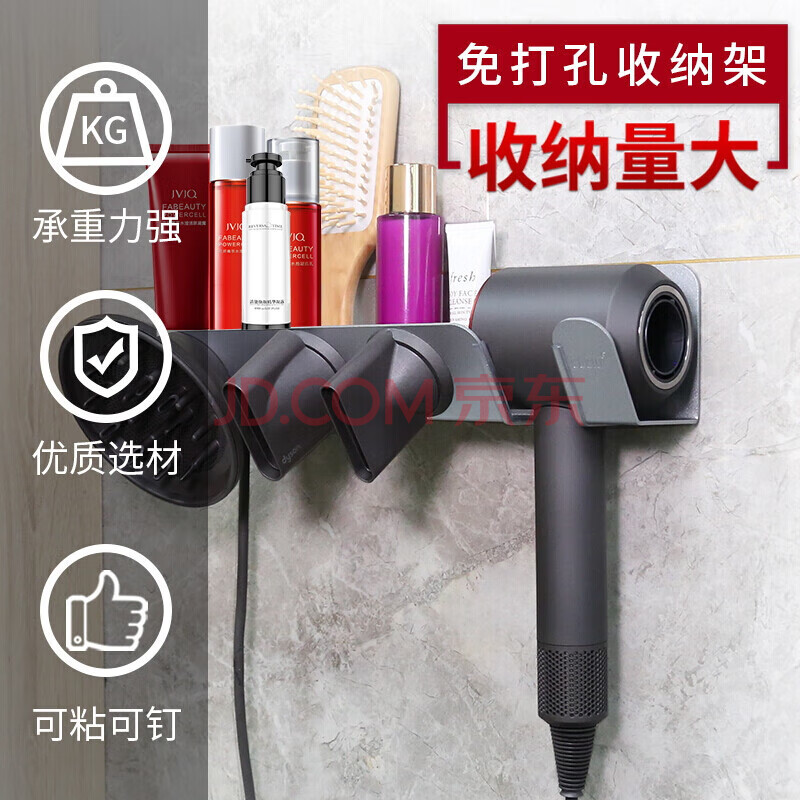 商品相册:BUBM Dyson戴森吹风机收纳支架吸磁性收纳壁架 吹风机陈列架 HD02银灰色第