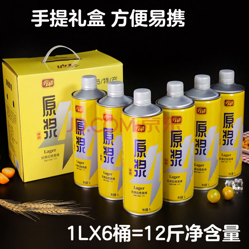 商品相册:亮动精酿原浆黄啤酒1L*6桶整箱礼盒装全麦酿造青岛特产 送礼踏春送礼第