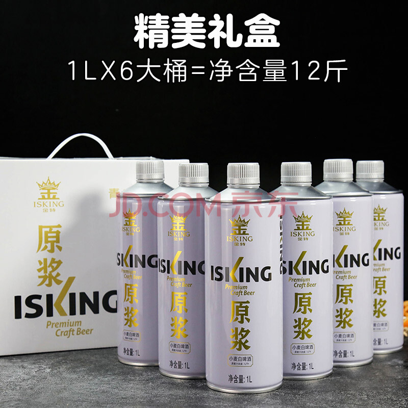 商品相册:金特(ISKING)精酿原浆白啤酒1L*6桶整箱礼盒装混浊德式小麦青岛特产踏春送礼第