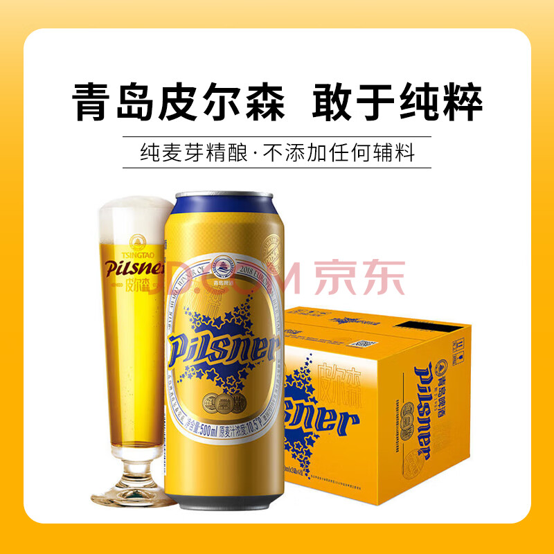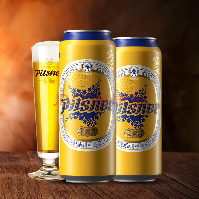 商品相册:青岛啤酒皮尔森拉格 全麦精酿啤酒 泡沫丰富大瓶整箱装500ml*12听第