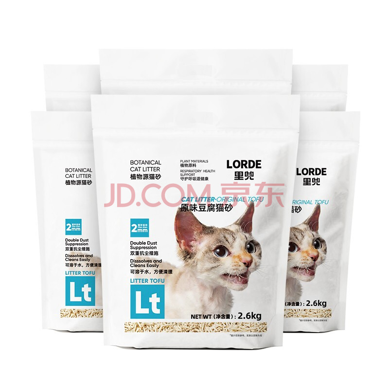 商品相册:lorde里兜除尘款纯豆腐猫砂低粉尘结团非膨润土可冲厕所囤货2.6kg×6袋第