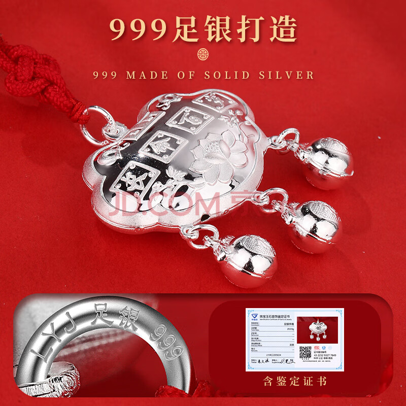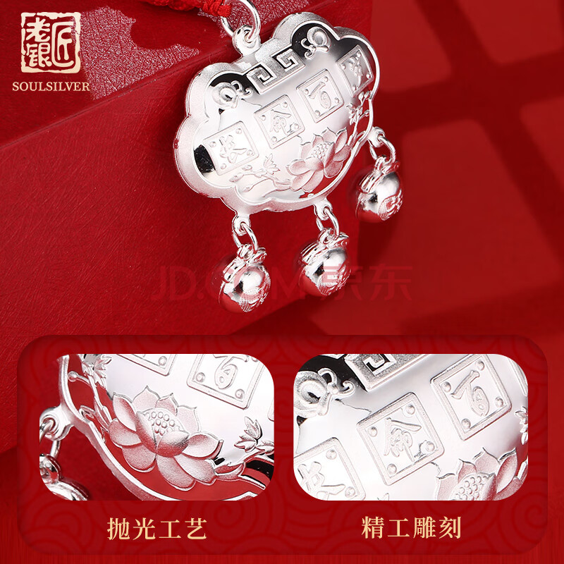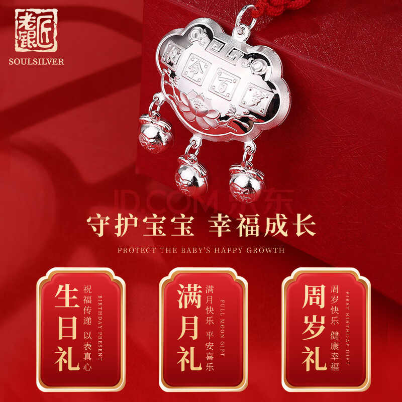 商品相册:老银匠999足银锁婴儿长命锁长命百岁宝宝银锁满月周岁礼物足银宝宝锁第