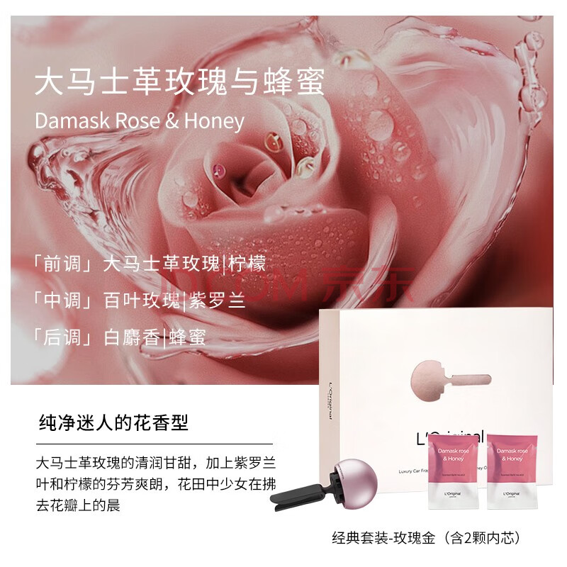 商品相册:L'original洛瑞欧车载香薰汽车香水香氛礼盒金属出风口摆件【玫瑰金】礼物第