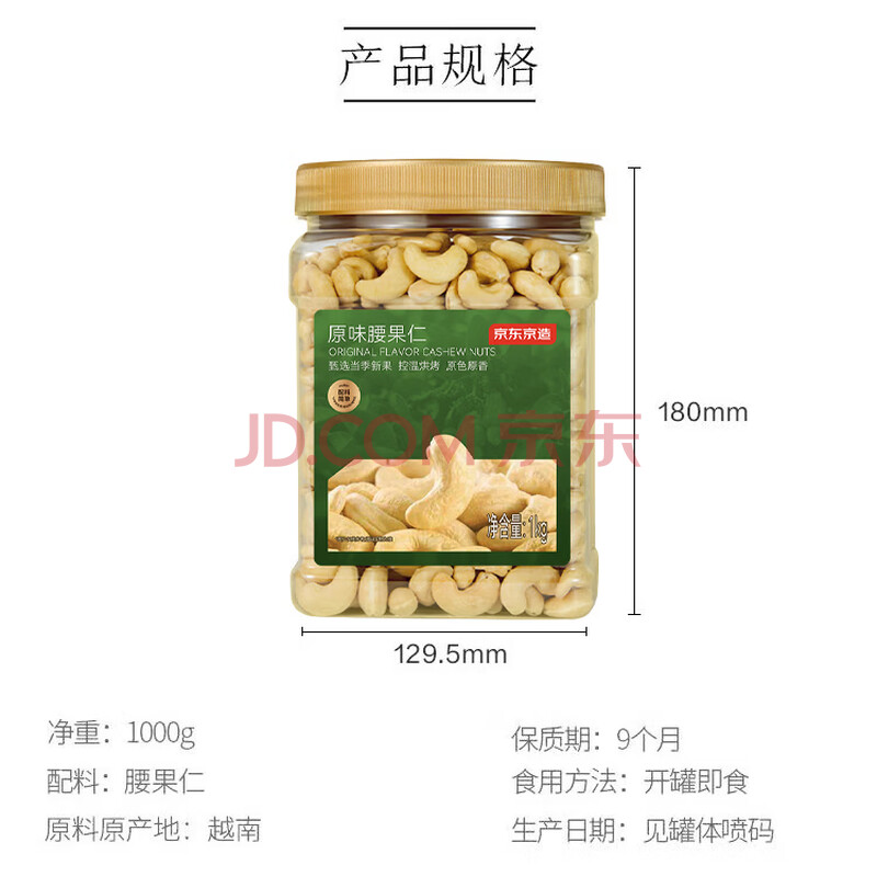 商品相册:京东京造鲜来多X京东PLUS会员原味腰果仁1kg每日坚果孕妇休闲零食京东自营第