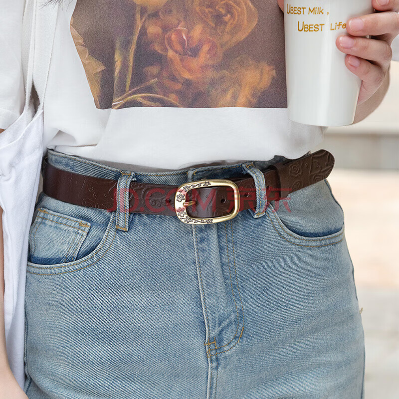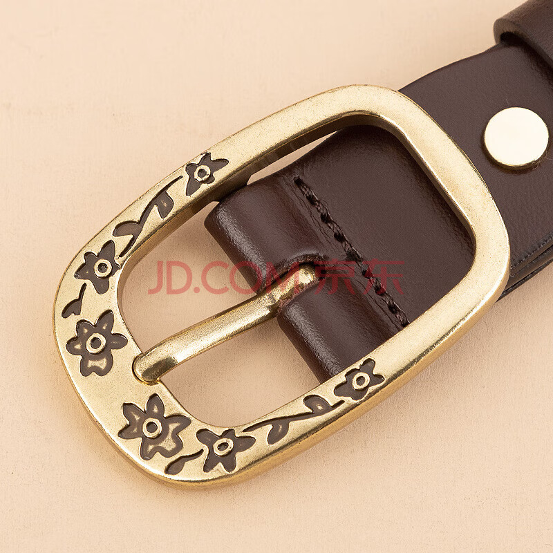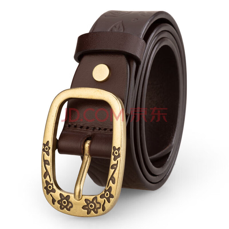 商品相册:牛当家皮带女牛皮女士复古雕花针扣腰带女百搭裤带5333 深咖色 105cm第