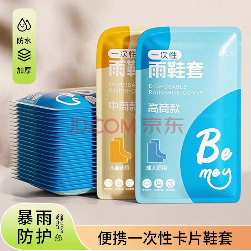 商品相册:ToMill一次性防雨鞋套加厚防滑男女防水便携雨具雨靴套儿童透明 5件装第