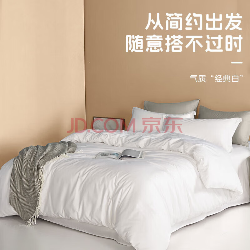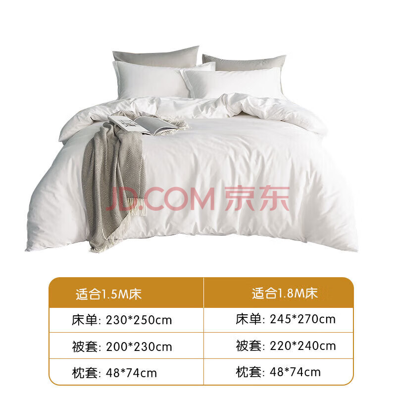 商品相册:然牌 白色四件套 纯白酒店床上用品 100%纯棉床单被套枕套 支持定制 1.5米床 被套200*230cm第