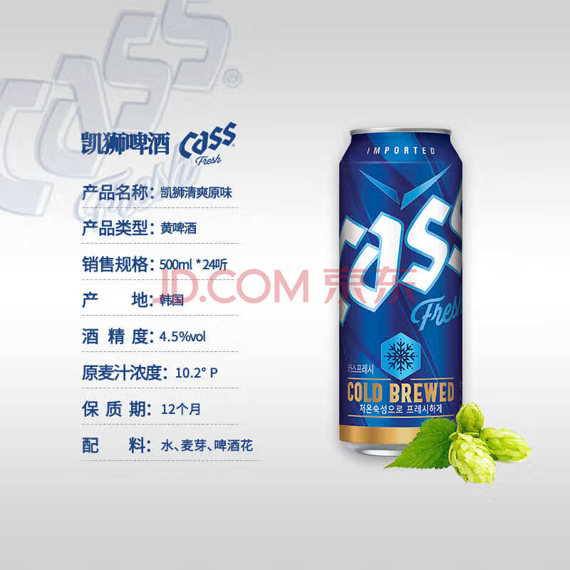 商品相册:凯狮(CASS)啤酒 500ml*24罐 清爽4.5度 韩国进口啤酒 原味 露营聚会踏春送礼第