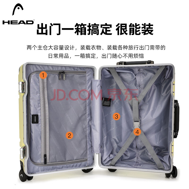 商品相册:海德(HEAD)行李箱男学生铝框拉杆箱女20英寸登机密码箱旅行箱子第