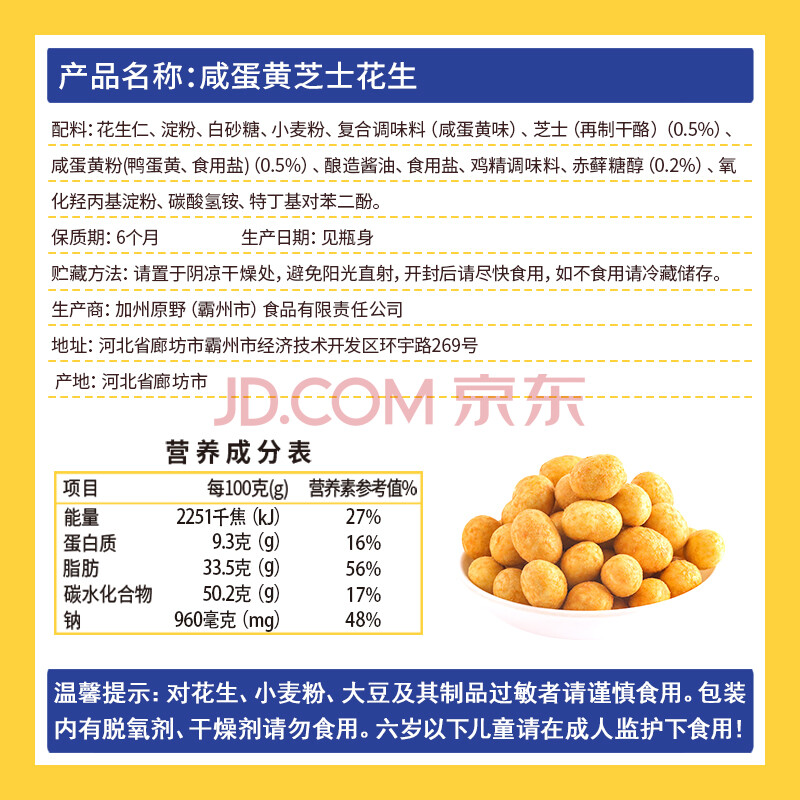 商品相册:加州原野咸蛋黄芝士鱼皮花生402g/罐 坚果炒货京东自营休闲办公小零食第