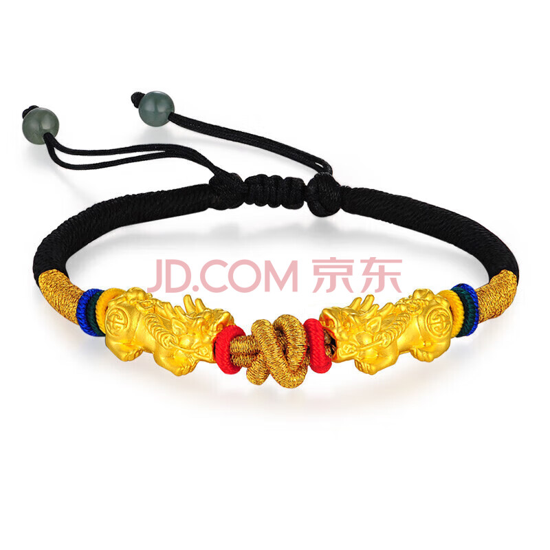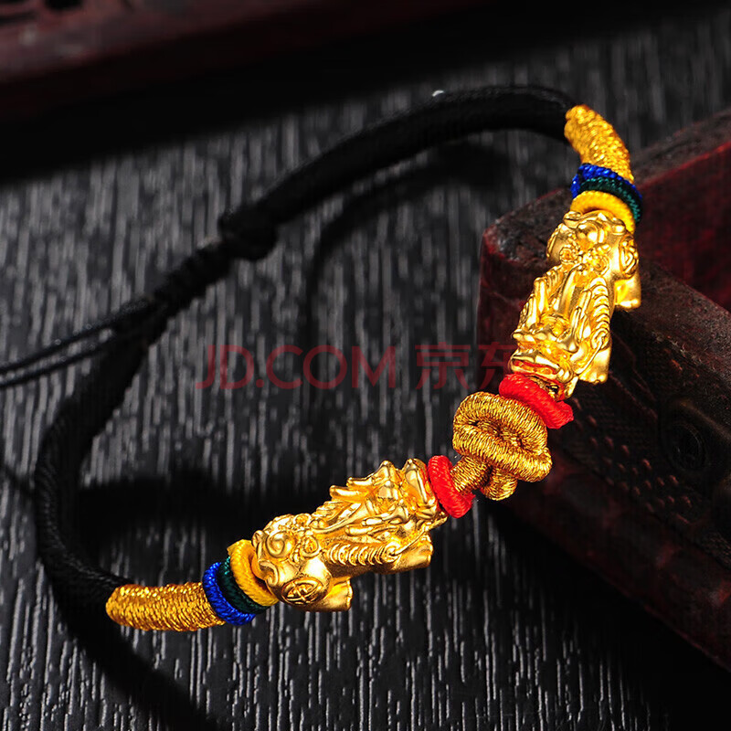 商品相册:蒂蔻(Tico)足金招财貔貅黄金手链男女3D硬金转运珠编织黑绳手饰品生日礼物第