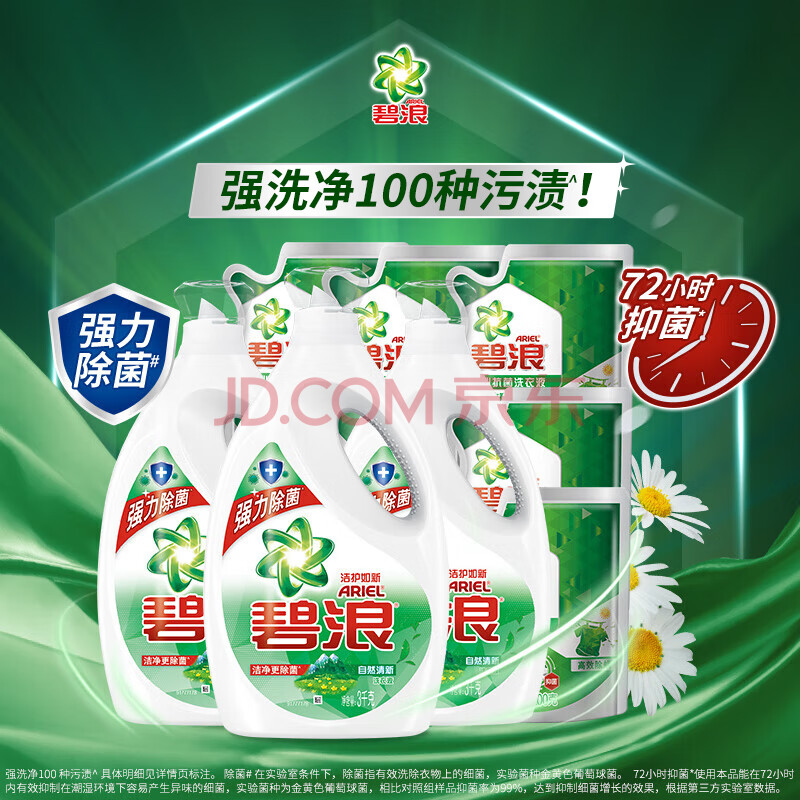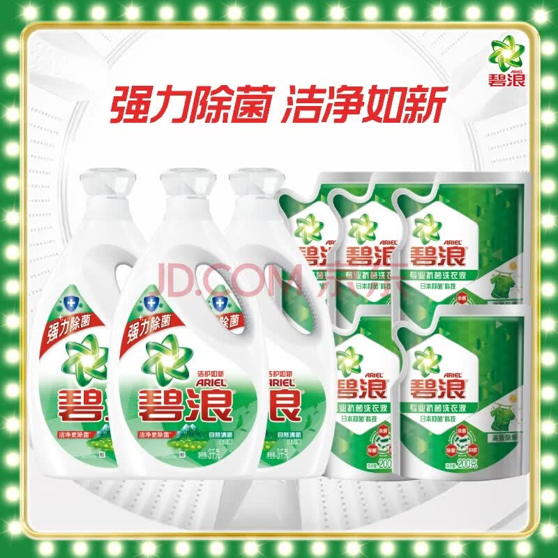 商品相册:碧浪除菌洗衣液20斤装(3kg*3瓶自然清新+200g*5袋草本清新)家庭装第