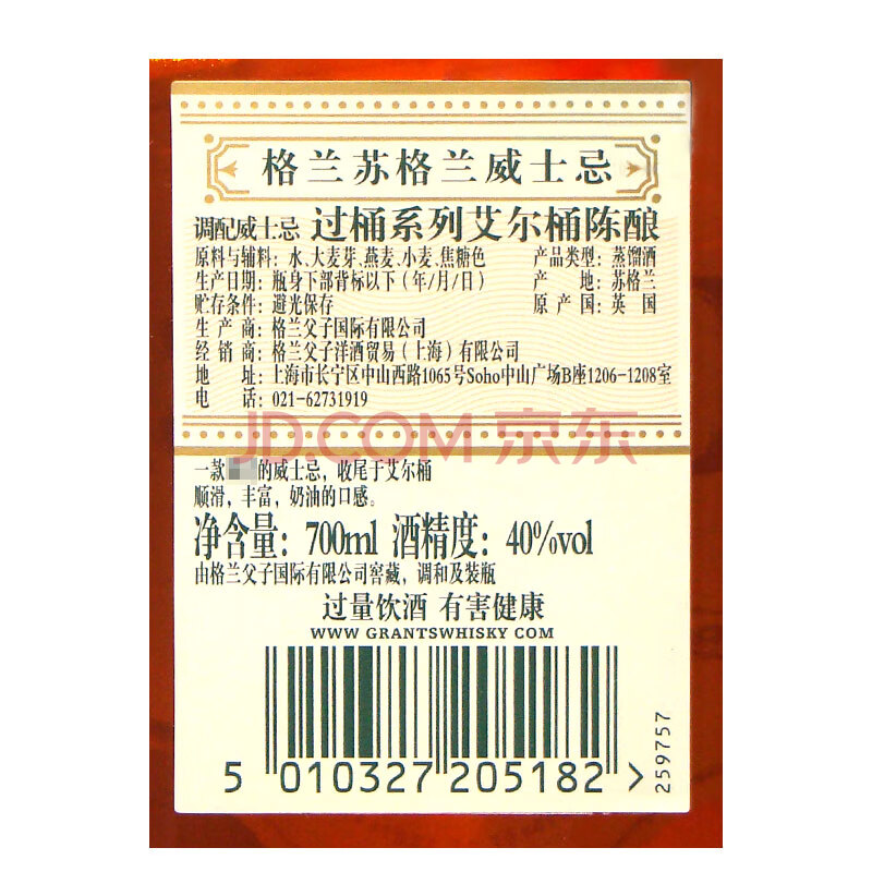 商品相册:GRANT'S格兰洋酒 苏格兰调和型威士忌700ml 啤酒桶 年货礼物送礼第