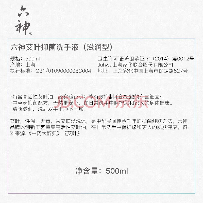 商品相册:六神【艾叶抑菌】洗手液500ml*2(有效抑菌99.9% 清爽 新老款随机发货)第