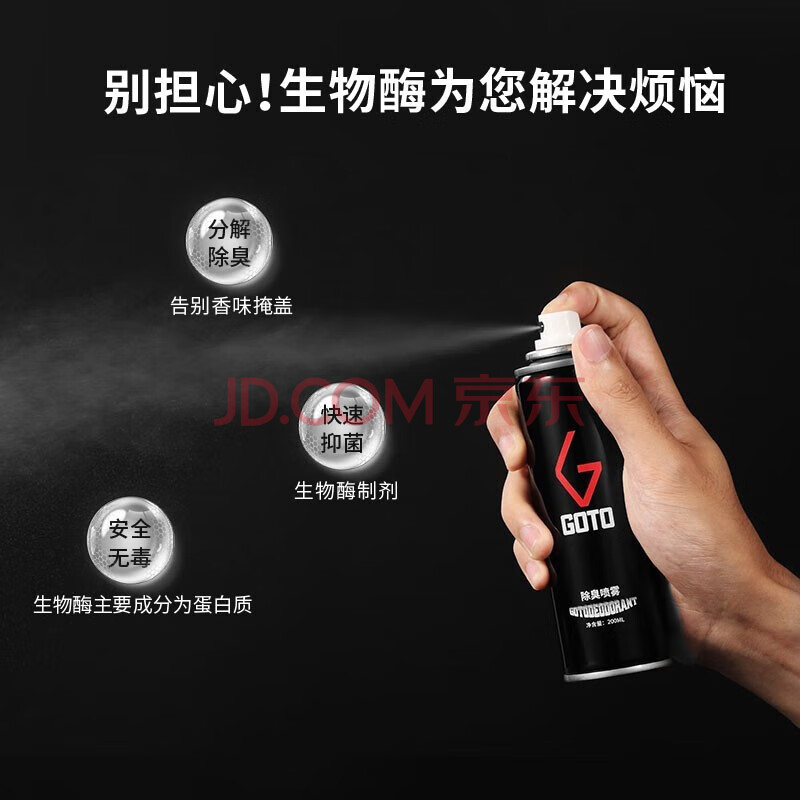 商品相册:GOTO球鞋祛异味剂aj椰子运动鞋袜克星去除脚汗异味除臭喷雾神器200ml第