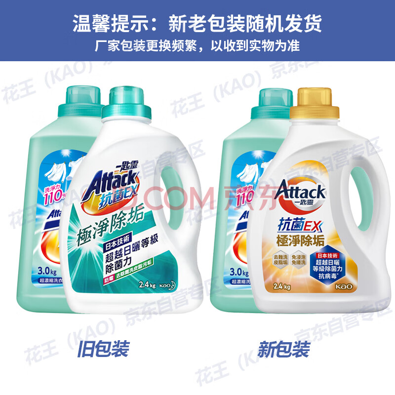 商品相册:花王(KAO)抗菌去渍洗衣液家庭装3kg+2.4kg 制菌除味去污消臭极速洁净第