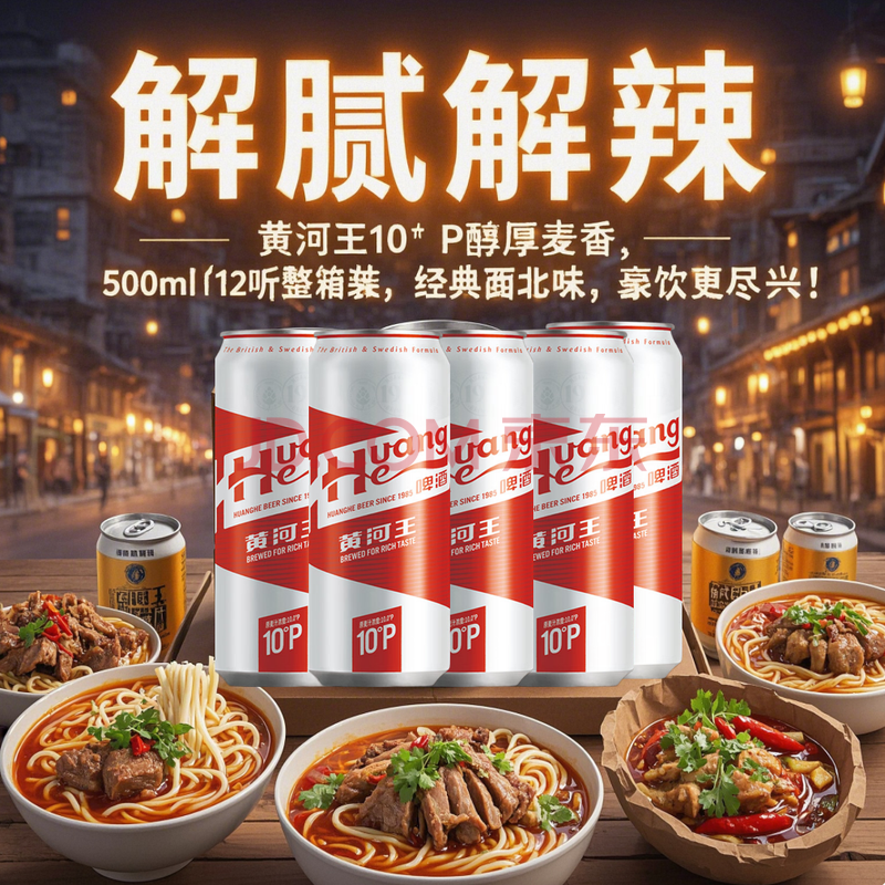 商品相册:黄河啤酒(HuangHe)黄河王10度 500ml*12听 新旧包装随机发 第