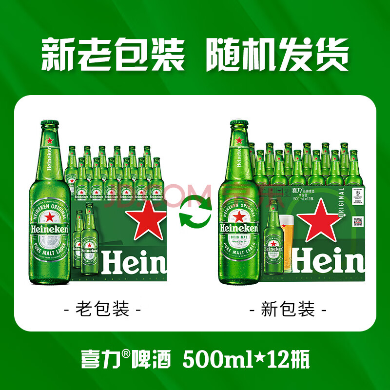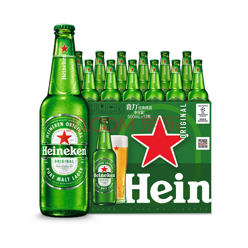 商品相册:喜力经典500ml*12瓶整箱装 喜力啤酒Heineken 京东自营婚宴用酒第