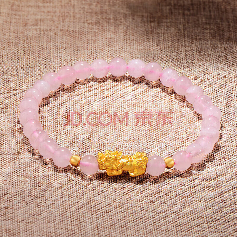 商品相册:蒂蔻(Tico)足金招财貔貅黄金手链女3D硬金转运珠粉水晶手串饰品生日礼物第