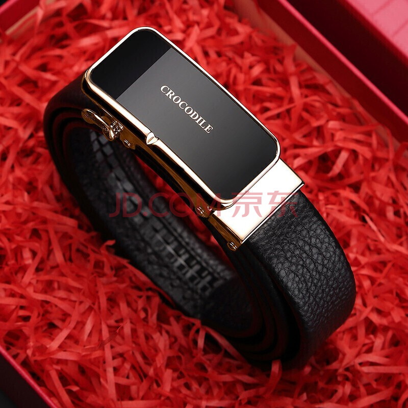 商品相册:鳄鱼恤头层牛皮女士自动扣腰带商务皮带生日礼物送女友T1561黑色第