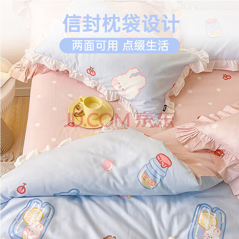 商品相册:多喜爱家纺纯棉床上四件套 全棉被套床单床上用品套件1.8米床229*230cm荷叶边款第