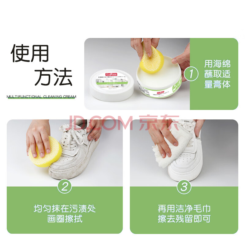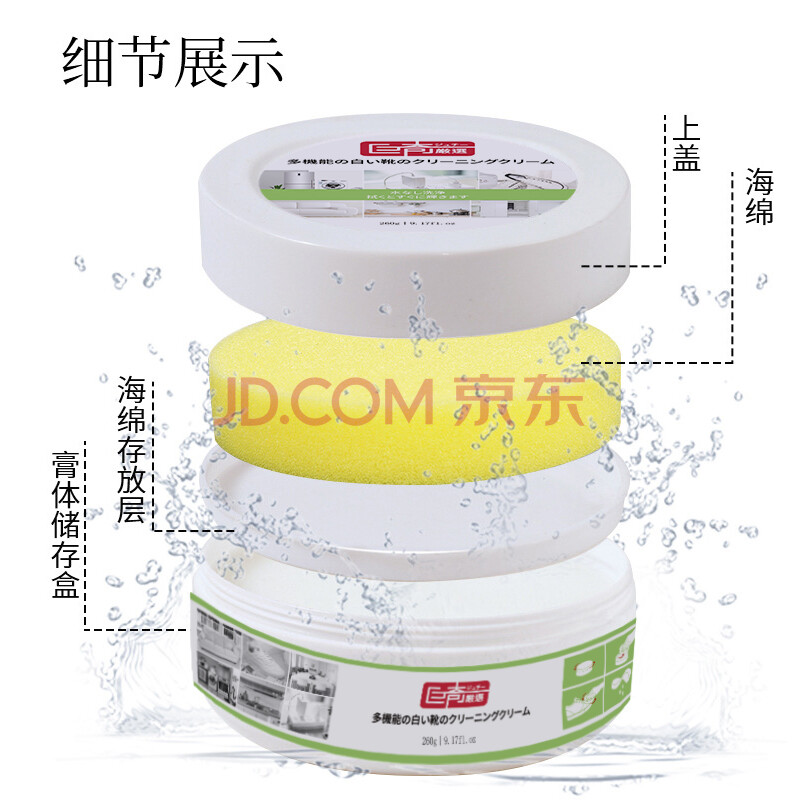 商品相册:巨奇小白鞋洗鞋清洁剂椰子油多功能清洁膏260g去黄去污免水洗擦鞋神器第