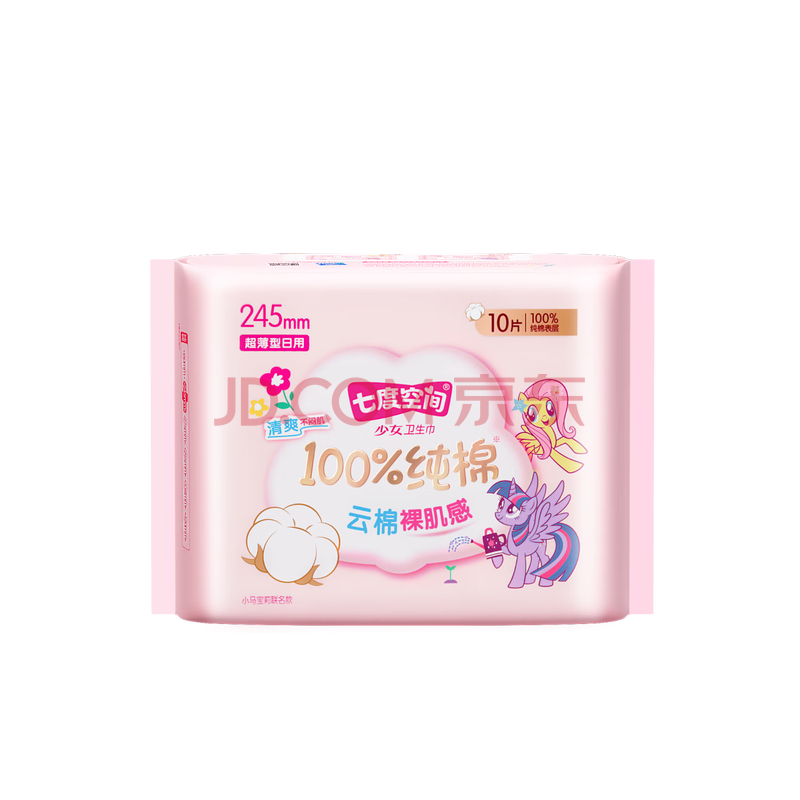 商品相册:七度空间少女超薄卫生巾100%纯棉透气日用姨妈巾245mm*10片【新国标认证】第