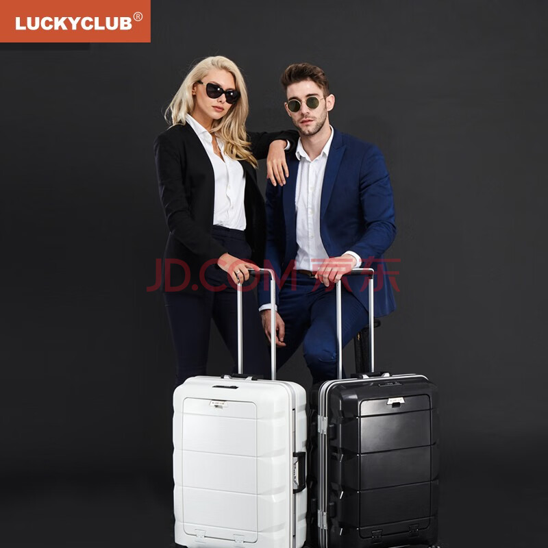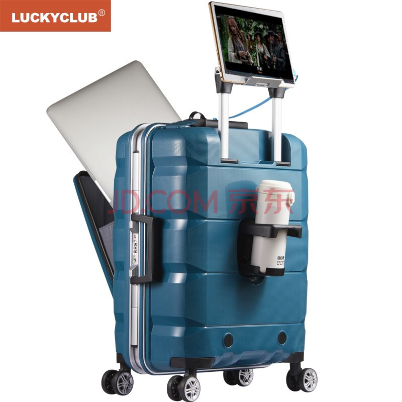商品相册:LUCKY CLUB 行李箱男女铝框拉杆箱前置开口商务旅行小多功能登机箱 20英寸第